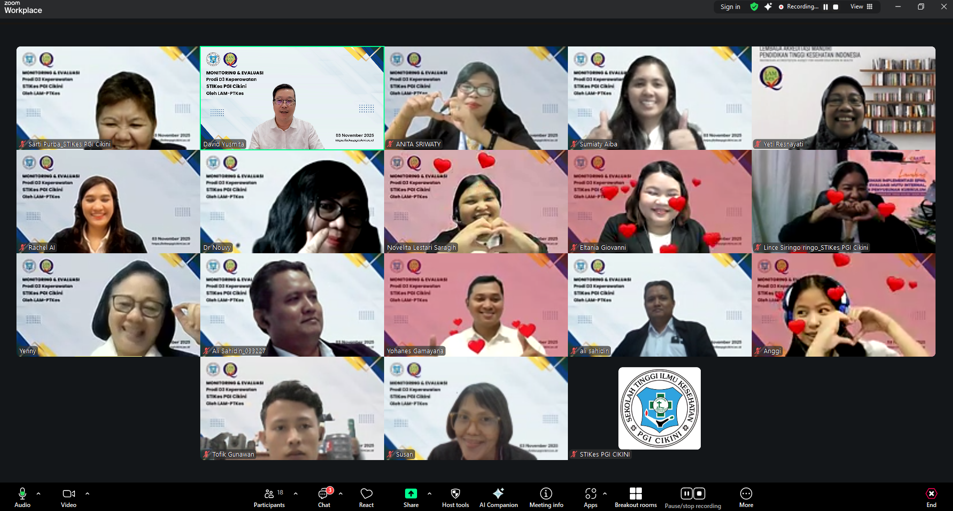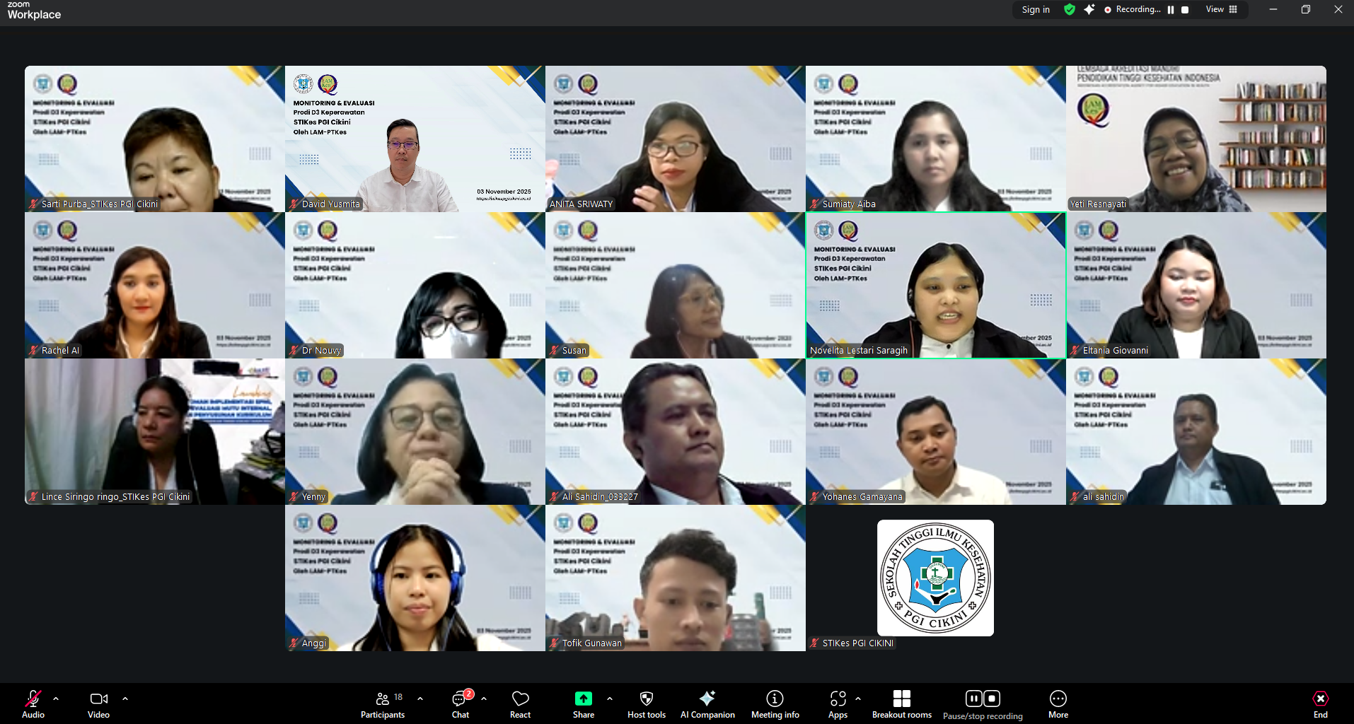 Pada hari Senin, 3 November 2025, telah dilaksanakan kegiatan Monitoring dan Evaluasi (Monev) Program Studi D3 Keperawatan Sekolah Tinggi Ilmu Kesehatan (STIKes) PGI Cikini oleh Lembaga Akreditasi Mandiri Pendidikan Tinggi Kesehatan (LAM-PTKes). Kegiatan ini dilaksanakan secara daring melalui aplikasi Zoom Meeting dan dihadiri oleh pimpinan, dosen, serta tenaga kependidikan Program Studi D3 Keperawatan STIKes PGI Cikini.