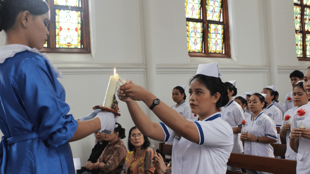 Sekolah Tinggi Ilmu Kesehatan PGI Cikini menyelenggarakan upacara pemasangan kap dan lencana serta ucap janji mahasiswa pada hari Jumat tanggal 5 Desember 2025 di Kapel Yayasan Kesehatan PGI Cikini. Pemasangan kap merupakan salah satu tradisi penting dalam pendidikan Keperawatan yang menandai kesiapan mahasiswa dalam memasuki tahap praktik klinik dengan penuh tanggung jawab, menanamkan nilai moral dan profesionalisme melalui pengucapan janji mahasiswa, serta menumbuhkan rasa bangga sebagai profesi Perawat. Upacara ini menjadi momentum reflektif bagai mahasiswa untuk meneguhkan tekad dalam meneladani semangat pengabdian Florence Nightingale, pelopor Keperawatan modern. Disaksikan oleh Ketua I Pengurus Yayasan Kesehatan PGI Cikini, dr. Loli J. Simanjuntak, S.P.D, MARS., secara bergiliran mahasiswa mengambil api dari sosok Florence Nightingale untuk menyalakan lilin yang mereka pegang sebagai simbol komitmen untuk melayani mereka yang membutuhkan, yaitu pelayanan yang holistic dan penuh empati. Selamat melayani dengan sukacita !